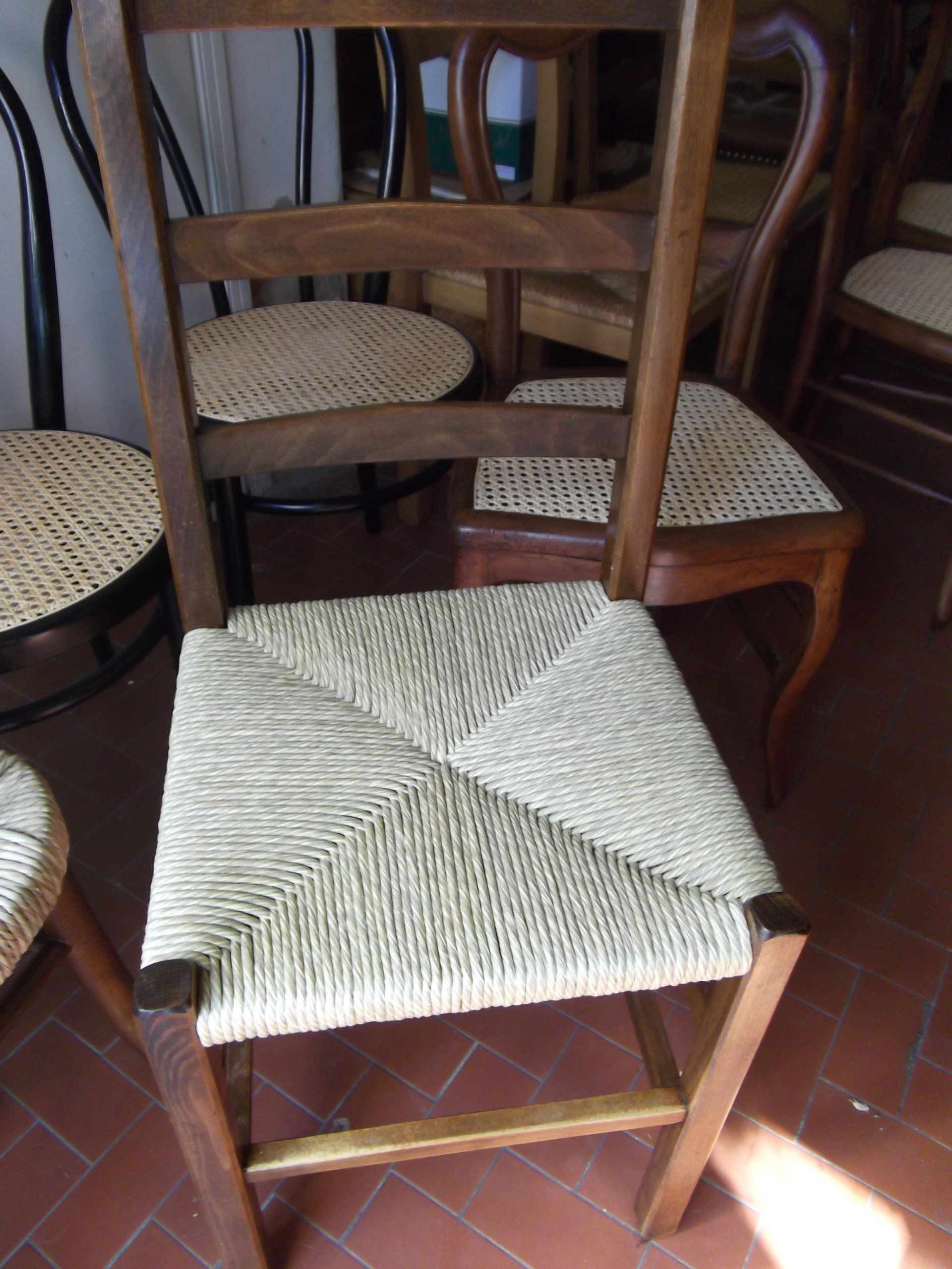 - sedie in Paglia di Vienna (mod. Thonet) eseguite completamente a mano o con intreccio preparato esternamente e poi fissato sulla struttura;