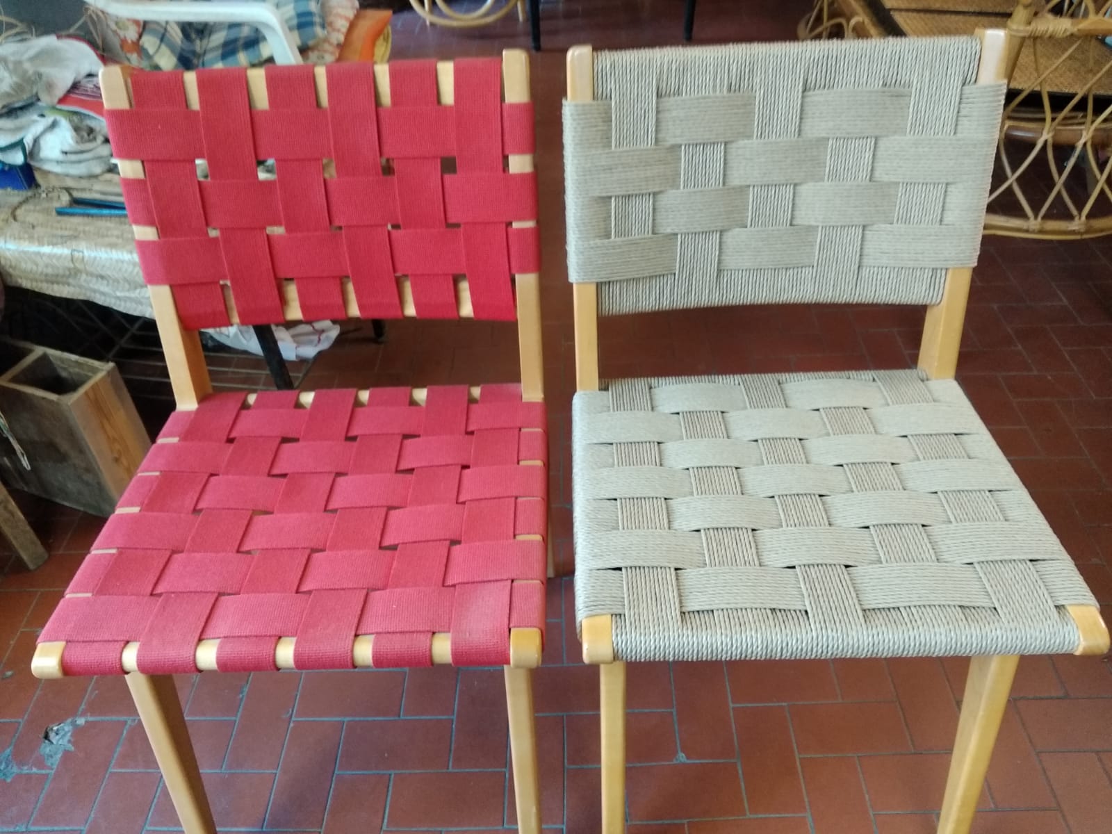 - sedie Chiavarine (mod. De Scalzi, Gio Ponti) in trafilato di giunco;
